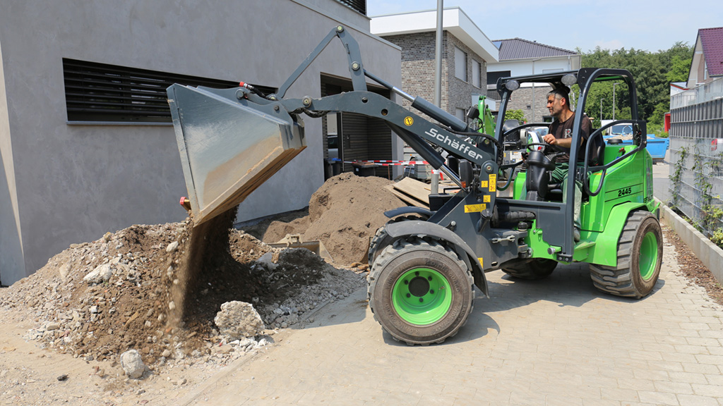The Schäffer 2445 SLT has formed part of the machinery fleet at garden and landscaping company Ringbeck for a few weeks. It didn’t take long for the machine’s potential to become clear. The compact wheel loader is currently being used on a project where it has come up against a number of specific challenges.